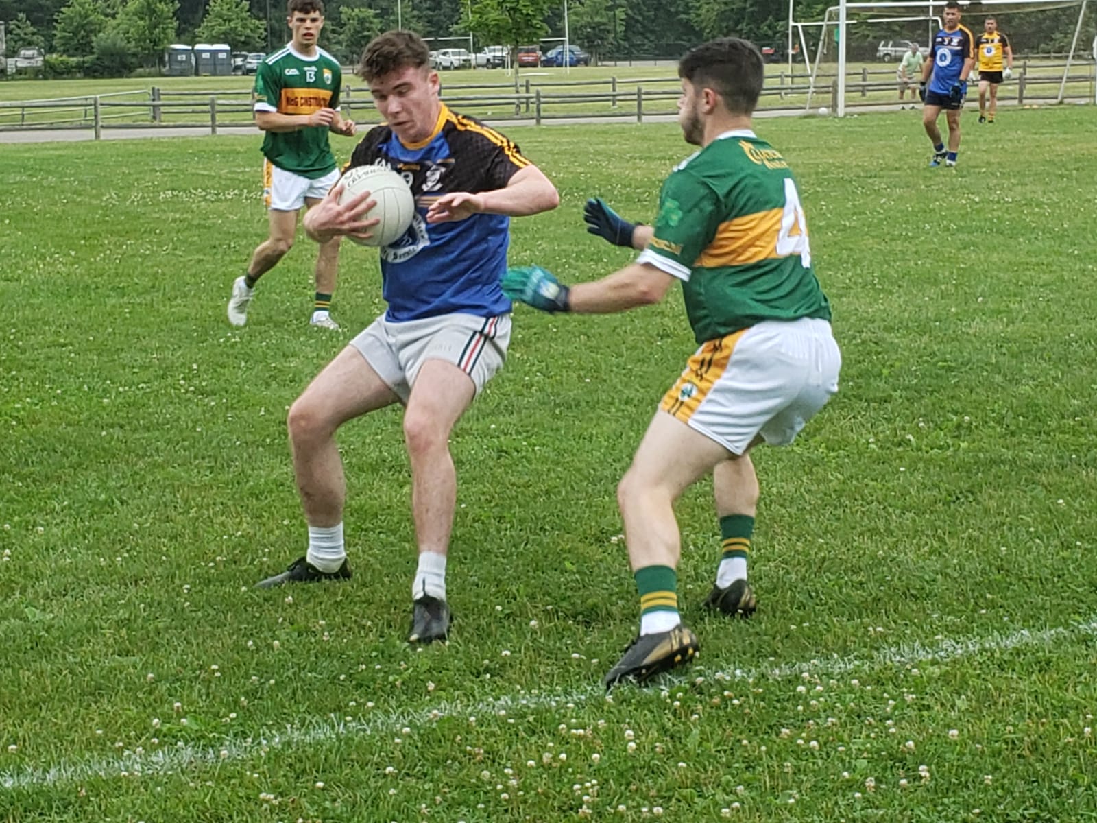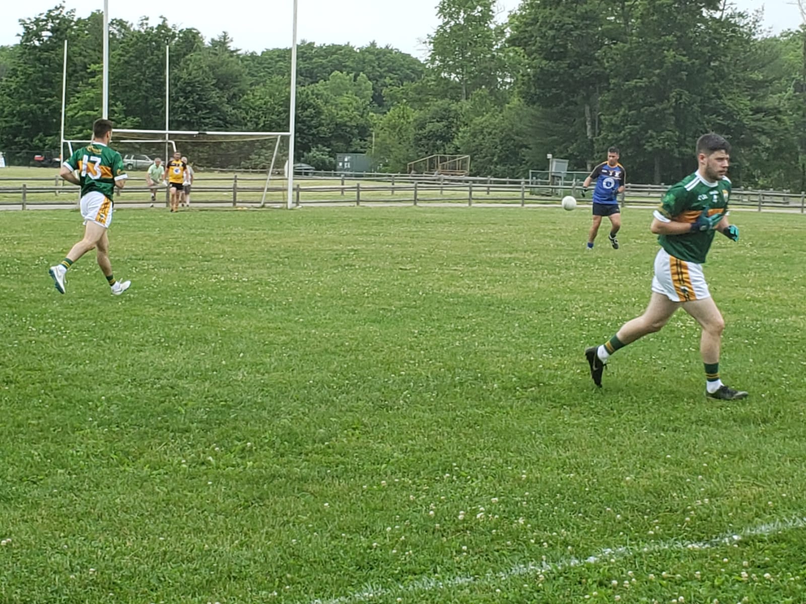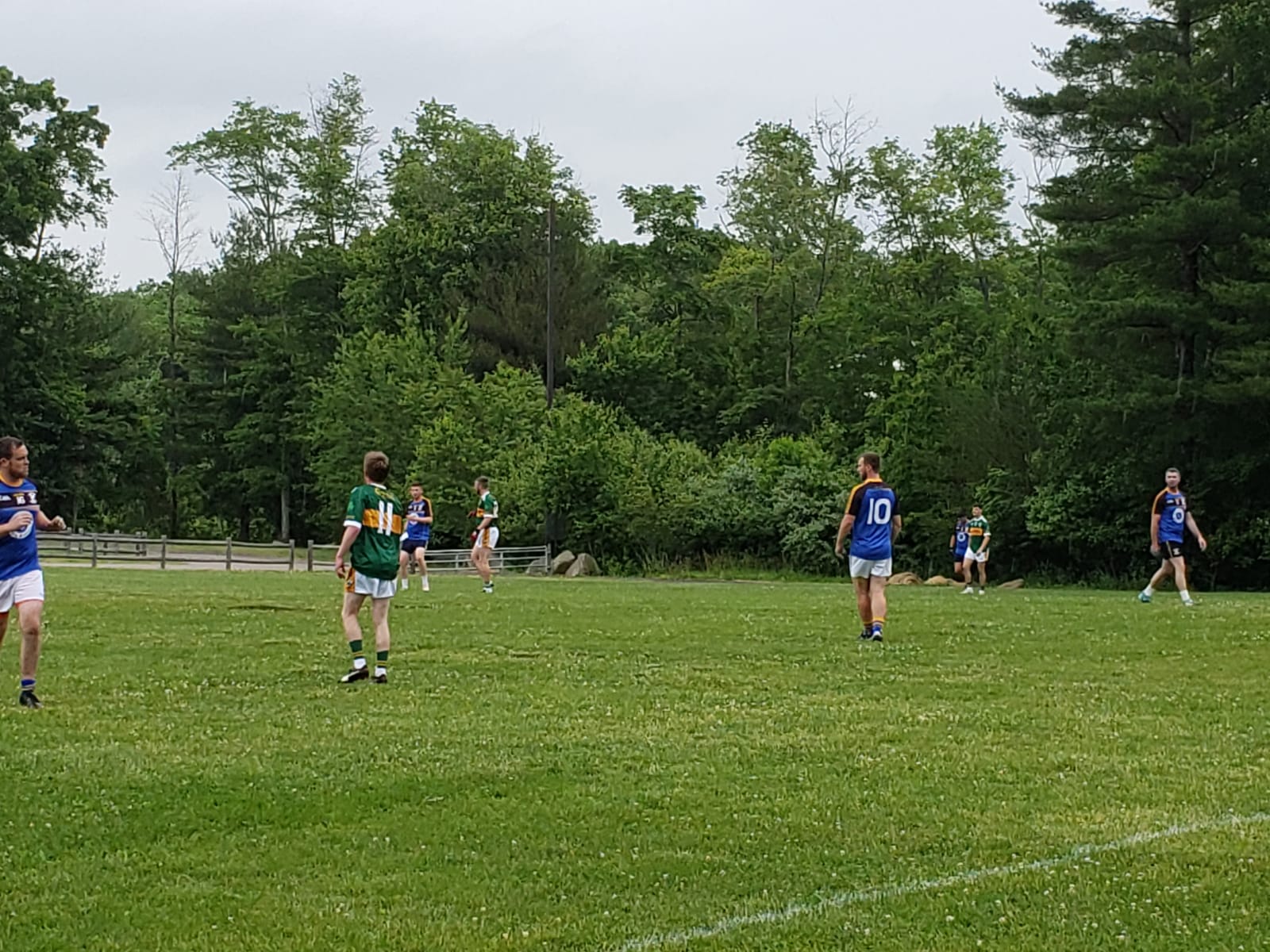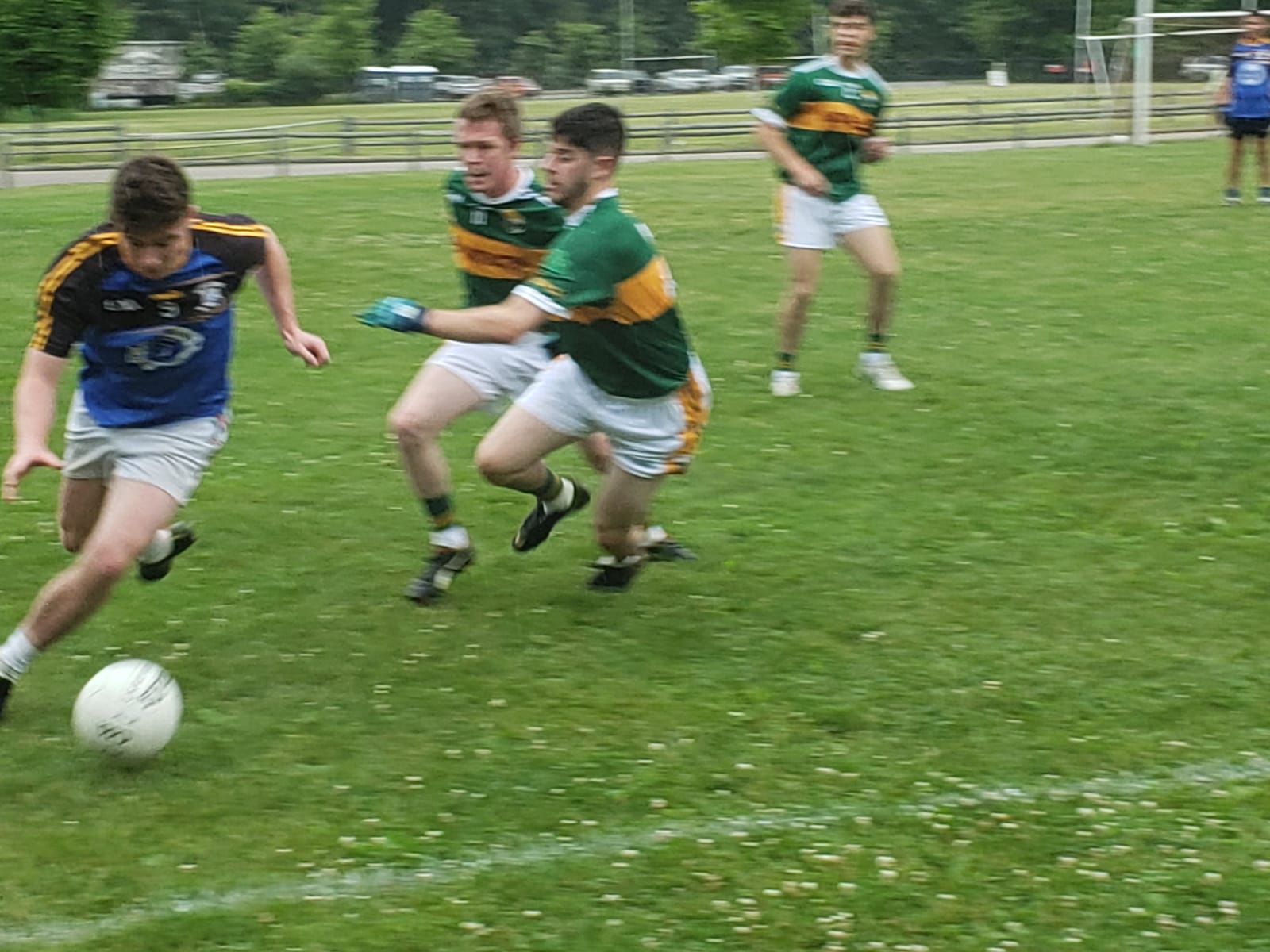 The Blues came out of the break swinging, stifling some promising Kerry attacks and turning the counters into both points and goals. Kerry saw the game slipping away after the Blues second goal, but remained determined to fight until the end. Vincent Doyle settled the midfield, attacking every kickout and winning the majority of them over larger players. Aaron Moore led the Kerry defense in stemming the flow of the Blues scoring, and the green and gold once again pulled within reach.